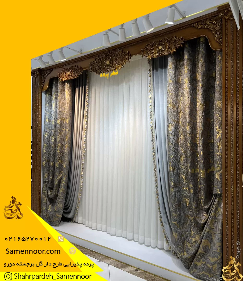 پرده پذیرایی سلطنتی طرح دار گل برجسته دورو